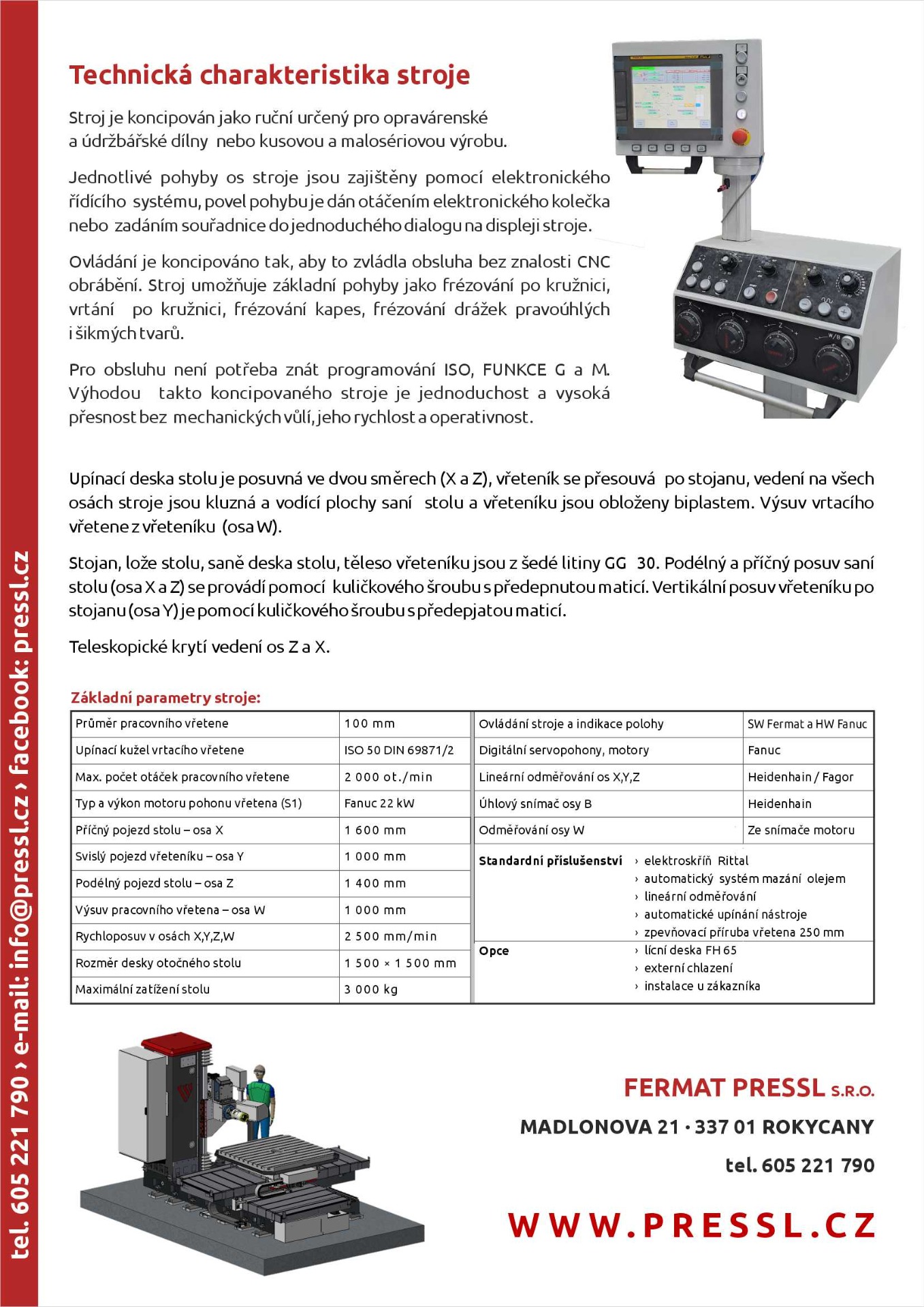 - lineární odměřování: Heidenhain, optické, absolutní pro osy X, Y, Z